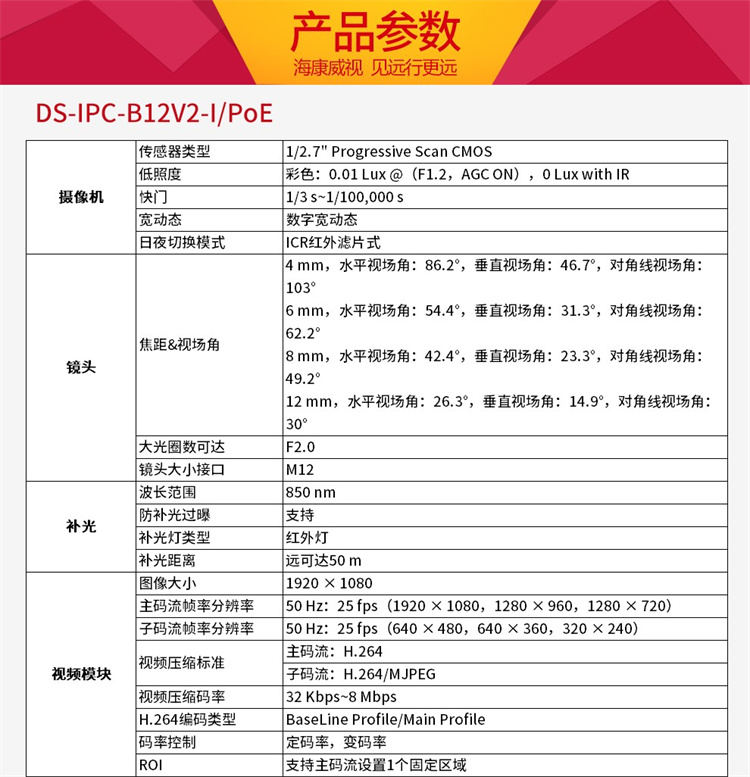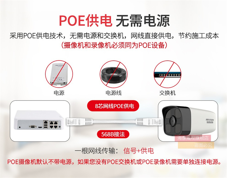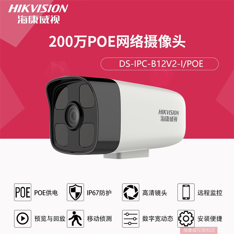 海康威视 B12V2-I (200万)视频监控设备 海康威视200万网络监控摄像头连录像机红外50米带POE 4MM焦距