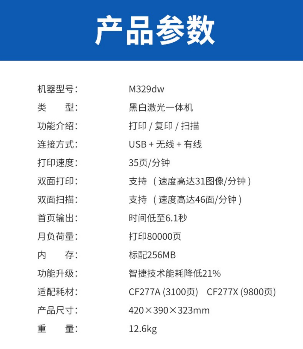 惠普(HP)黑白激光一体机M429dw/fdw 329dw打印机多功能自动双面复印扫描无线 M429fdw【四合一+自动双面打印+无线连接】 官方标配