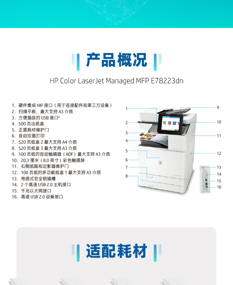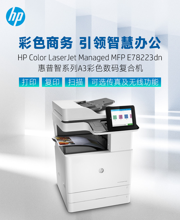 惠普hp 78223dn 彩色激光多功能一体机 自动双面打印复印扫描